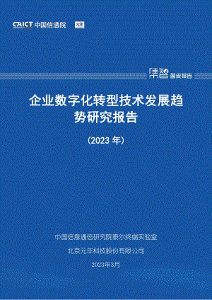 中国信息通信研究院泰尔终端实验室北京元年科技股份有限公司2023年3月企业数字化转型技术发展趋企业数字化转型技术发展趋势研究报告势研究报告(20220233年年)版权声明版权声明本报告版权属于中国.